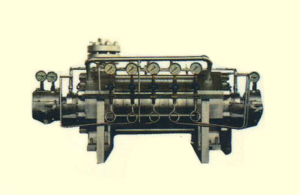 轴向力由双平衡鼓平衡,残余轴向力由推力轴承承受。用穿杠把吸入段、中段、吐出段联接成一体。